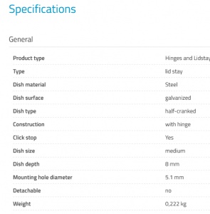 Lid Stay Medium half cranked with Hinge and Click-Stop Function