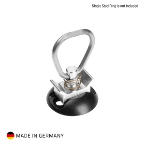 Lashing point in black anodised aluminium. Specially designed for subsequent mounting on a speaker cabinet, for example. The flexibly mountable panel has a direct tensile load-bearing capacity of up to 500 daN.