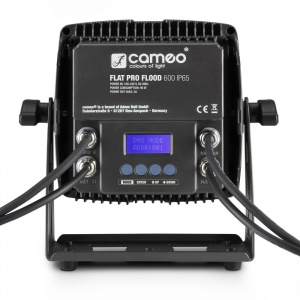 Cameo FLAT PRO séria FLOOD 600 IP65 je kompaktné svetlo pre umiestnenie vo vonkajšom prostredí s podporou RDM vybavené deviatimi 12 wattovými LED diódami typu 6 v 1, ktoré vytvárajú bohaté farby RGBWA, jemné pastelové odtiene a intenzívne UV efekty. Konvekčné chladenie v krytí IP65, uhol lúča 40 ° a obnovovacia frekvencia 3 000 Hz pre činnosť bez blikania. Odolný kovový kryt, 3-pólové konektory DMX,konektory pre sieťový vstup a výstup, podsvietený 4-tlačidlový displej pre ľahké a intuitívne ovládanie. Bezpečnostný zámok pre neoprávnený prístup. Cameo FLOOD 600 IP65 poskytuje 6 režimov DMX ovládania s funkciami stmievania a stroboskop, korekcie teploty farieb a aplikácie Master, Slave a Standalone. Svietidlo pracuje v rozmedzí striedavého napätiaí 100 - 240 V.