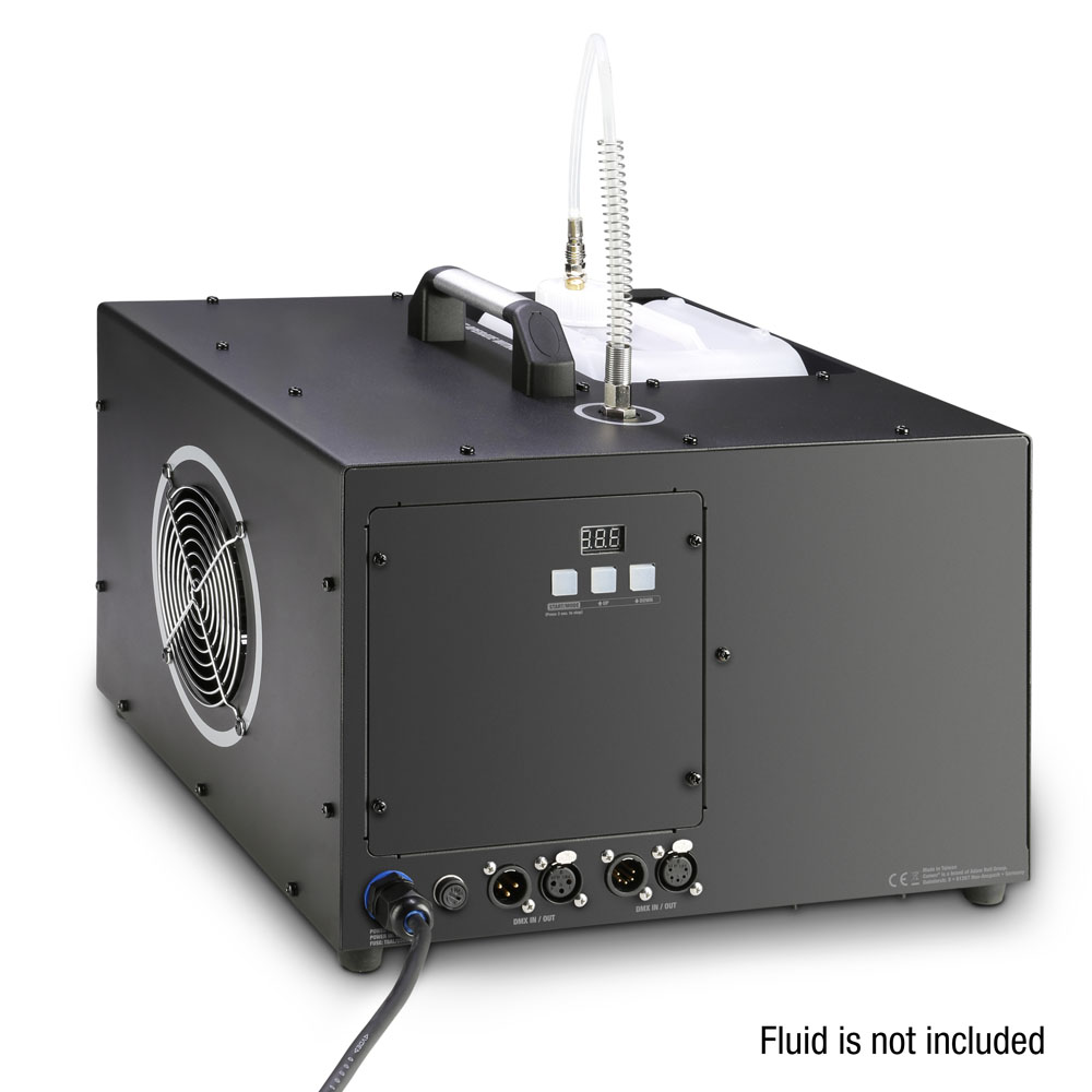 Microprocessor controlled 1400 Watt Hazer Max. output volume 991 m3 per minute Long-lasting evaporation tube made of stainless steel 316 Automatic self-cleaning Output and fan individually adjustable in 100 increments2-channel DMX control and standalone mode Built-in insert for fluid canisters up to 5 L Whisper-quiet operation Ideal for TV, film, theatre, discos and live events Enriches the effect of any light show