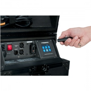 The MAGMATIC MAGRF™ is a 433-MHz wireless remote control that is compatible with all MAGMATIC foggers, hazers, snow machines, CO2 simulators, low lying, and bubble machines. Once the receiver unit is installed, it has an effective range of up to 150-feet with clear line-of-sight (50-meters) to manually control the output of your Magmatic machine.