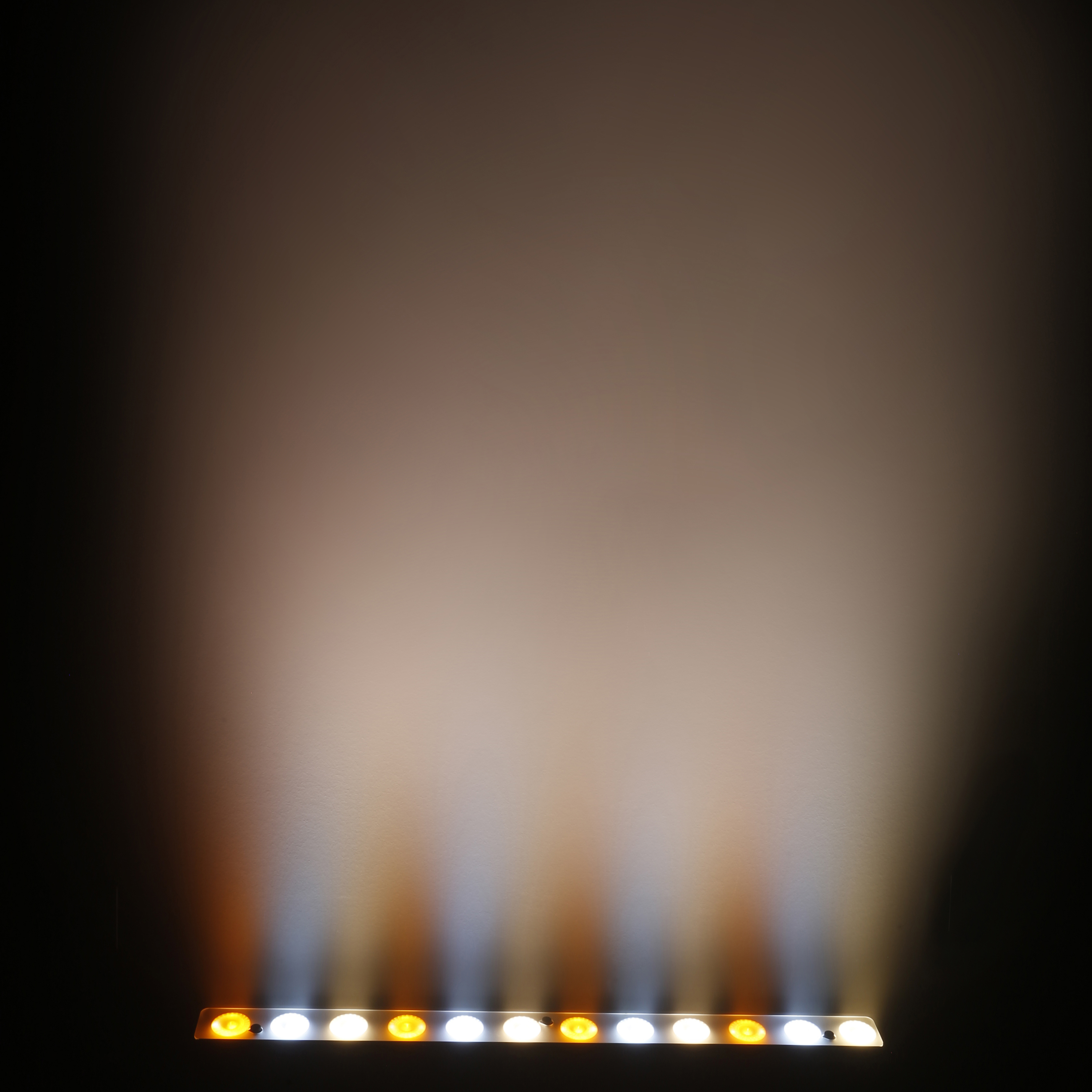 12 x 10 watt Tri-LEDs 3-in-1 Cool White, Warm White and AmberFull white temperature control from Tungsten to CW (1,600 - 6,800 K)CRI 97 @ 2,800 K for natural colour renderingDim to Warm (DTW) technology to emulate halogen-style dimmingSingle pixel control for stunning chase and pixel mapping effectsSelectable 16-bit dimming curves and responseRDM enabled9 DMX modes plus sound activation and automated operationHighly efficient convection cooling for noiseless operationFlicker free for use in TV and film applicationsGlare shield and frost filter includedOmega bracket set available as accessory