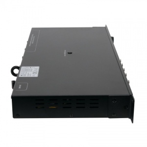 The IPC415™ is a 19” rack mountable intelligent DMX power control center, featuring 4 locking power connector outputs (15A each), 4 locking 5pin XLR DMX outputs, 1 locking 5pin XLR DMX input and 1 locking 5pin XLR DMX through and a multi-voltage universal auto switching power supply (100-240v 50/60Hz). Power to the power outputs can be scheduled to automatically switch On/Off via an internal scheduler when DMX signal is lost or when a specific cue is triggered from a DMX console. The IPC415™ can be mounted with the 19” rackmounts or truss mounted using a clamp (not included) attached to the M10 rigging point in the center of the unit.