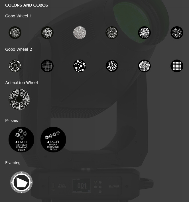 Dvojité rotujúce gobo kolieska, animačné kolies...ko, dvojitý frost, prisma a iris dopĺňajú jeho komplexnú sadu funkcií v tomto tichom a extrémne výkonnom automatickom frame zariadení.