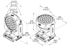 The B-EYE is first and foremost an excellent quality wash light. It is able to wash surfaces with colors at any distance, making the most of its light source. B-EYE is brighter than any LED-wash with the same rated power, thanks to its special optical unit with a truly amazing lumen/watt ratio, designed and built by Clay Paky. The zoom ranges from 4° to 60° and it is therefore suitable both for environments with low ceilings (small theatres and TV studios, for example), where large angles are extremely useful, and for shows in arenas or large environments, where a tight zoom is perfect.