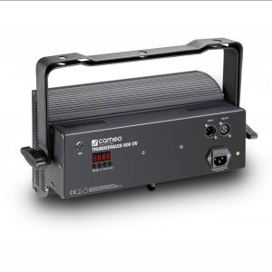 Add amazing glow-in-the-dark effects to your show and fire up the Thunder Wash 600 UV, another addition to Cameo's successful Thunder Wash series. Equipped with a total of 648 ultraviolet SMD LEDs, this powerful blacklight fixture is the perfect energy-saving replacement for conventional 400 watt UV lamps.In addition to 4 modes of DMX control, this flicker-free UV wash light features standalone and master/slave functionality. It provides a wide 75° beam angle and includes a strobe function, smooth dimming plus a built-in microphone for sound activation.Menu navigation and configuration are a breeze thanks to a bright LED display with mode, enter, up and down buttons. The Thunder Wash 600 UV comes in a durable all-metal housing with 3-pin DMX and IEC power connectors and a universal mounting bracket.