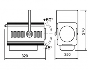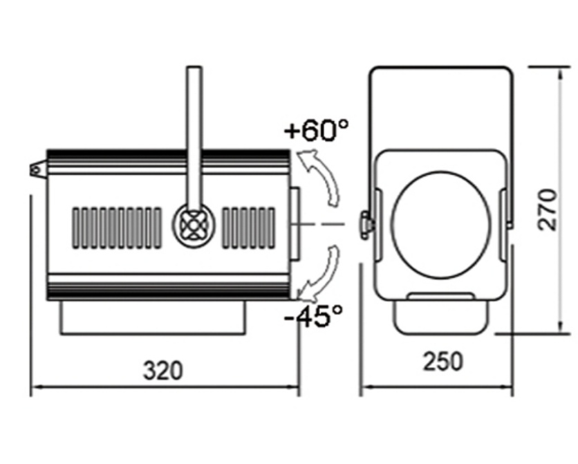 Projector can work tilted by +60°/-45°. IP20 rate.