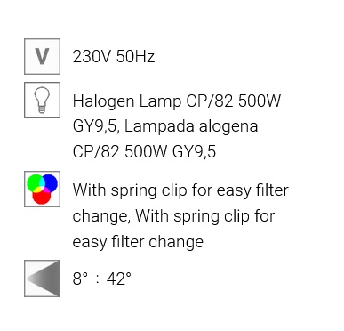 Socket GY9.5. Manual Zoom 8°÷42°.