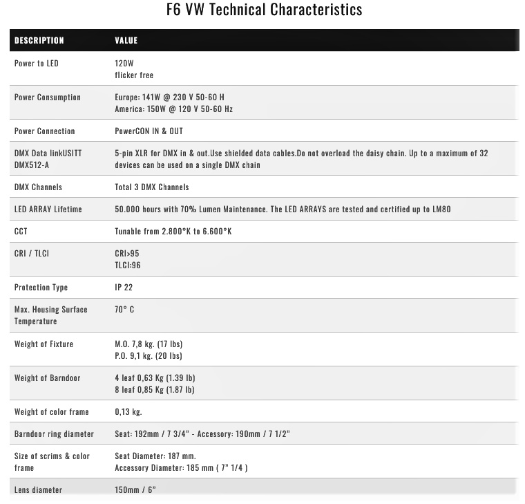 • Smooth 100-0% dimming via DMX 512 with no shift in color temperature
