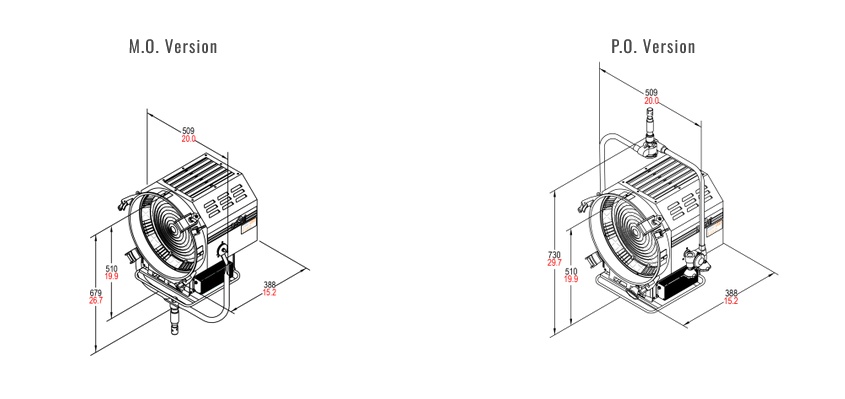 • Same characteristics as a traditional Fresnel: single shadows, spot/flood focus range and exceptional barndoor control