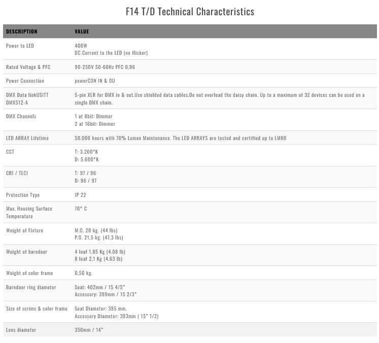 • Interchangeable accessories with our conventional range of Tungsten and HMI Fresnels