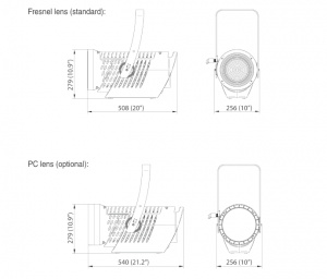 Its flexibility of use is remarkable: the fresnel version produces a flood light up to an angle of 87° (field angle), or a spot light with an angle of 15° (beam angle). Variation is continuous, smooth and linear within this range.