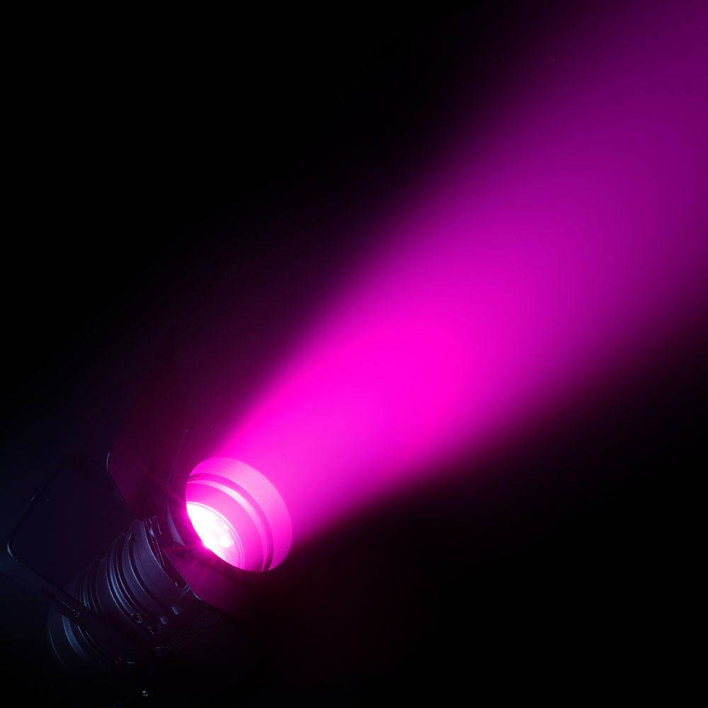 High-intensity 60 W RGBW COB LED Plano-convex lens Continuously adjustable manual zoom with beam angle of 9° to 41° RDM enabled 19,800 lux @ 1 m Flicker-free projection Rugged metal housing Includes rotatable wing limiter and colour filter frame