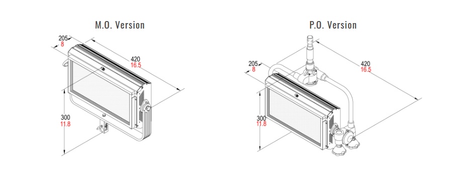 • Available with either positive lock manual yokes for comfort and ease of handling, or pole operated yokes which can be used via the lighting pole for Panning and Tilting the lights as well as manually since the mechanical activators are equipped with clutches