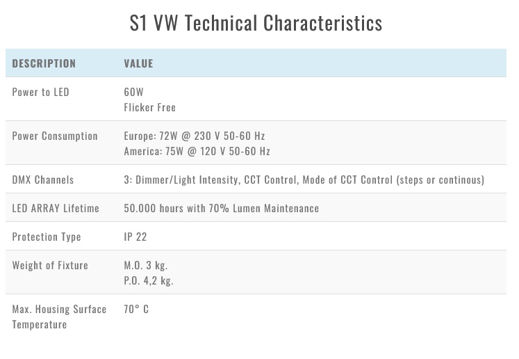• 100% flicker free system with universal Power Supply unit 90-250V to work in every condition and frame rate