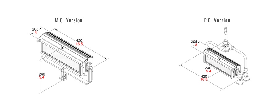 • Available with either positive lock manual yokes for comfort and ease of handling, or pole operated yokes which can be used via the lighting pole for Panning and Tilting the lights as well as manually, since the mechanical activators are equipped with clutches.