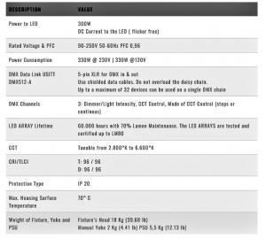 • The fixtures offers a very smooth dimming control with precise colour tuning and the +/-green correction allow users to provide have perfect colour matching