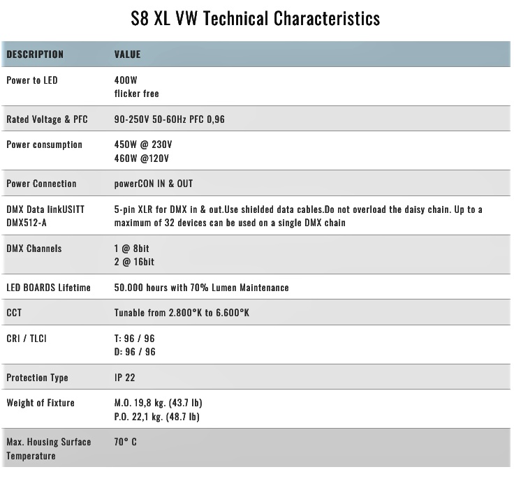 • DMX (alebo lokálne) ovládanie intenzity svetla od 0 do 100 % s plynulým prechodom a stmievaním v divadelnej kvalite... bez blikania pri akejkoľvek úrovni stmievania