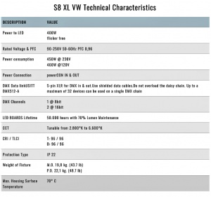 • Vysoká účinnosť, tichý pasívny manažment tepla. Tepelná stabilizácia prevádzkovej teploty LED je riadená interným tepelným senzorom a procesorom, variabilnou rýchlosťou ventilátora a chladičom na udržanie optimálnej konštantnej teploty LED diód