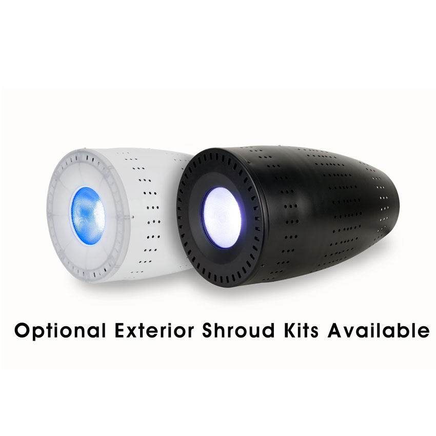 The DW PENDANT™ wash luminaire features (36) 3W 2-in-1 Cool White / Warm White LEDs, a 41° beam angle, silent convection-cooled operation, full-color temperature range control from Tungsten (2,900K) to Daylight (6,800K), variable dimming curve modes, strobe effects, adjustable refresh frequency and gamma brightness for flicker-free operation for TV and Film, DMX and RDM (Remote Device Management) protocol support, an internal E-Fly™ extended range wireless DMX transceiver, LOCKING 5pin XLR DMX in/out and power input connections, an LCD menu display with 4 button control panel, removable pendant and yoke mounting brackets, multi-voltage universal auto-switching power supply (100-250v), and optional exterior shroud kits available.