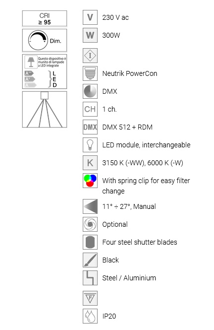 LED Profile, is a zoom profile spotlight incorporating a 300W LED source, available in 2 different colour temperatures,