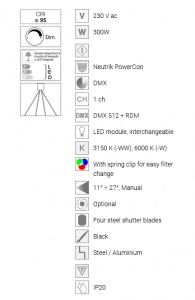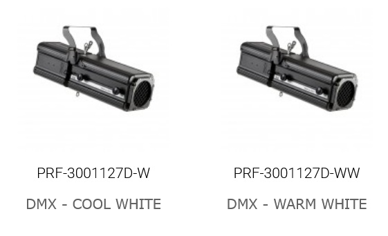 LED Profile reflektor so zoom profilom a 300W LED zdrojom, dostupný v 2 rôznych farebných teplotách 3150K a 6000K, stmievateľný s DMX štandardom.