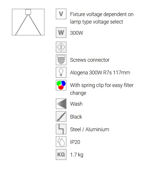 (230/110Vac 50/60Hz) for 1 Halogen lamp 300W 117mm, Socket R7s.