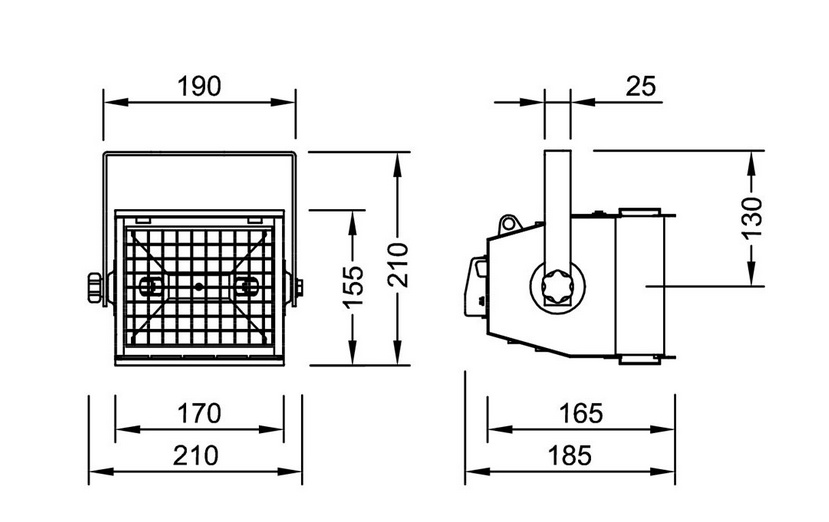 Symmetrical optics. Housing in aluminium and steel plate. Scratch resistant black