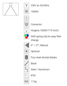 Professional halogen profile, manual Zoom 9°÷27°.