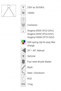 Profesionálny halogénový profilový reflektor 650W/1000W, manuálny Zoom 20°÷40°.