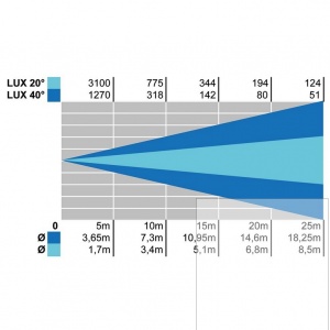 Optický systém s vysokoúčinným reflektorom a plankonvexným zoomom Ø120mm a Ø180mm, dokonalé zaostrenie s rovnakým systémom a nastavením mäkkosti hrany lúča.