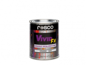 VividFX, an ultra-violet special effects paint represents a spectacular development for the special effects designer, scenic artists, and night club designer. This range of brilliant ultra-violet paints is available in thirteen vibrant colors. One of the widest palettes available! VividFX paints have been formulated using the highest quality fluorescent pigments available giving the artist an unparalleled combination of color choice, UV "glow" and versatility.