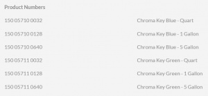 Rosco Chroma Key Paints have been formulated with the assistance of video technicians throughout the country. They are manufactured to provide the high luminance values and color saturation for keying effects.