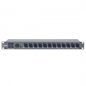 Netron EN12-45 je výkonná ethernetová brána DMX s vysokou hustotou s dvanástimi RDM kompatibilnými RJ45 DMX portami. Jednoduchá konfigurácia s radom integrovaných predvolieb a širokou škálou pokročilých funkcií spájania a smerovania je ideálnym zariadením pre živú produkciu alebo inštalácie vyžadujúce veľa DMX portov. Uzávery kontaktov umožňujú odvolanie predvolieb, smerovaní, zlúčenia alebo akýchkoľvek interných signálov.