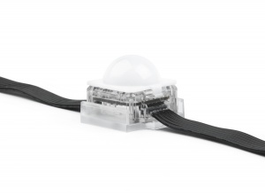 Pixel dimensions: 36 x 30 x 13 mm (1.5 x 1.2 x 0.6 in.) Pixel dimensions with dome: 36 mm x 30 mm x 27 mm (1.5 x 1.2 x 1.1 in.) Weight: 1.8 kg (4.0 lbs.) for 64 Dots, 200 mm (7.9 in.) spacing, with 2 m (6.6 ft.) lead-in cable and connector Maximum number of pixels per string: 64 Standard pixel spacing (pitch): 200 mm (7.9 in.) Minimum pixel spacing (pitch): 110 mm (4.3 in.) Maximum pixel spacing (pitch): 2000 mm (78.8 in.) Standard lead-in cable length: 2000 mm (78.8 in.) Maximum lead-in cable length: 5000 mm (196.9 in.) One pixel = one Dot