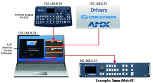 Kompatibilný s RCS2 a RK-350, ako aj s akoukoľvek treťou stranou, ktorá používa protokol TPP alebo ovládače AMX / Crestron