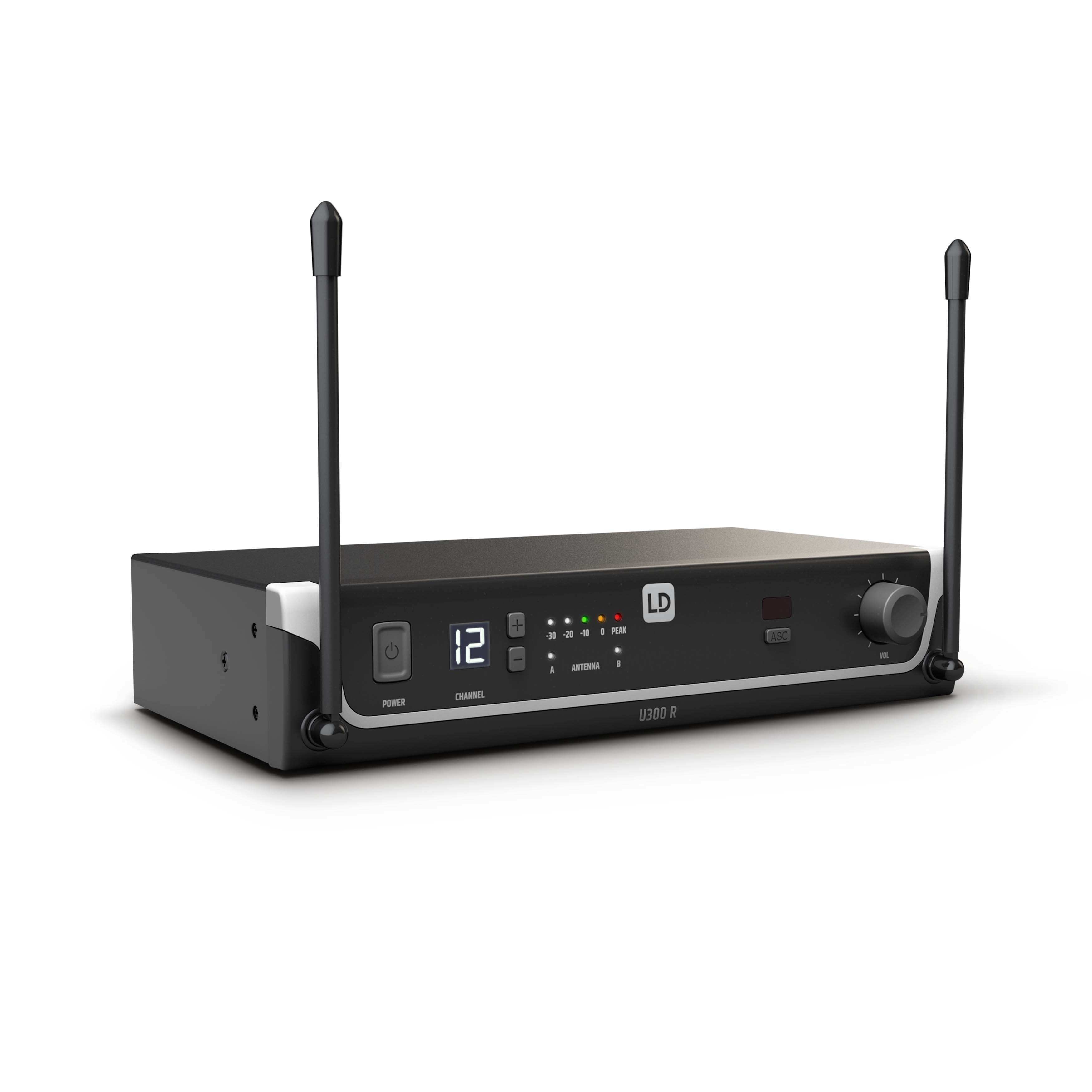 Developed in Germany, the UHF diversity wireless systems from the U300® series deliver excellent audio performance. They achieve a range of 100 metres in ideal conditions and are available in five frequency bands: 584–608 MHz, 655–679 MHz, 823–832 MHz + 863–865 MHz, 470–490 MHz or 514–542 MHz. Up to six U300® systems can be used simultaneously in each frequency band. Convenient one-touch synchronisation via infrared ensures fast, problem-free wireless connection between the transmitter and receiver, while a squelch with pilot tone en...sures disruption-free operation. U300® transmitters have a 10 mW output and an operating time of 10 hours on two AA batteries. The handheld microphone’s frequency response ranges from 55 Hz to 16 KHz. With a lower cut-off frequency of 25 Hz, the bodypack is also suitable for transmitting 5-string bass guitars with a deep H string. The bodypack’s input level can be adjusted to both active and passive guitars and basses over three levels. The power switch features a handy standby mode for temporary muting. The U300® receiver is fitted with a bright LCD channel display, an LED chain for displaying audio signal strength and both a balanced XLR and an unbalanced 6.35 mm audio output. The audio output can also be switched to instrument level for directly connecting to guitar and bass amplifiers. U300®-series wireless systems feature a fresh, modern design and are available as vocal sets with receiver and dynamic handheld microphone with cardioid characteristic, bodypack and headset or bodypack and lavalier microphone. The microphone characteristic can be changed using U500®-series replaceable heads. U300® instrument sets are available with bodypack and clip-on microphone for wind instruments or a double-shielded low-capacitance cable for guitars and basses.