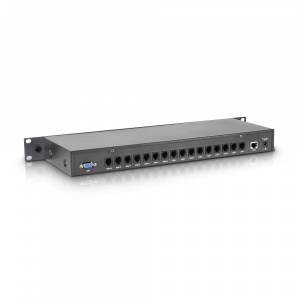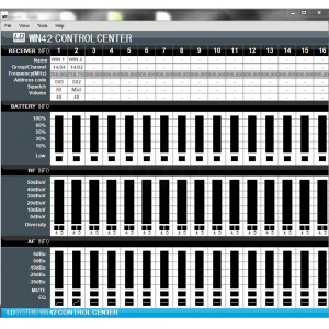 The LD Systems WIN42HUB is a software-based 19“ controller for WIN42 wireless systems and Windows. The included WIN42 CONTROL CENTER software uses an "environment scan" to check the location for unused frequencies which can be assigned to the connected receivers, saved, and retrieved again. This makes it possible to control and monitor up to 16 WIN24 wireless systems. Frequency, signal strength, audio level, battery status, and additional data of the connected WIN42 receivers are displayed in clearly-structured graphs.