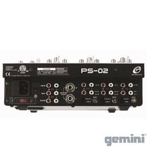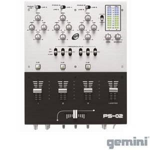 The second of the PS range of DJ mixers from Gemini. This series of mixers is two colour, shiny grey and black, have a metal chasis and an ergonomic smooth curve front panel. The PS-02 DJ mixer has 6 line, 3 convertable phono/line, RCA inputs, 1/4 inch balance outputs, triple ground screws, a user replaceable Rail Glide crossfader, a lit push button cue section with a Cue mix/split switch, dual VU display , a bright LED, a switch mode and a 1/4 inch headphone output and mic input. All in all - good value for money!