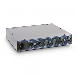 Product typeMergerTypeactiveInputs2Input connectors6.3 mm jack, XLRInput impedance2 k Ohm(s)Adjustable inputYesOutputs2Output connectorsXLRAdjustable outputnoOutput impedance600 Ohm(s)Max. output level+20 dBu (balanced) dBuIndicatorsPowerControls+6 dBu / -10 dBV switchable, ground lift, mono/stereo, mute, PowerOperating voltageintegrated (115 / 230 V)Power consumption2.5 WWidth222 mmDepth160 mmHeight44 mmCabinet materialsheet steel/aluminiumCabinet surfacepowder coated/anodizedWeight1,51 kg