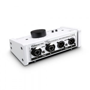 Palmer Monicon®, and... the volume is right!With Palmer Monicon®, your monitor volume is always under control. The passive mini-mixer with the oversized control is inserted between the stereo output of the notebook, PC or interface and an active monitor system and thus permits convenient and precise volume control of the monitors from the workstation. The passive circuitry with only a few components has absolutely no affect on the sound. Mute and mono buttons make it possible to mute the outputs and merge the stereo output signal into a mono master signal.The inputs and outputs of the controller are equipped with XLR connectors and the 3.5mm stereo TRS sockets usually found on computers. Combo input sockets also permit connection with 6.3 mm TRS plugs. Thus the Palmer Monicon® is compatible with both professional and consumer equipment. Genuine wood sides make the practical studio tool in its massive powder-coated sheet steel housing an elegant looking "little helper" that is a typical Palmer product.