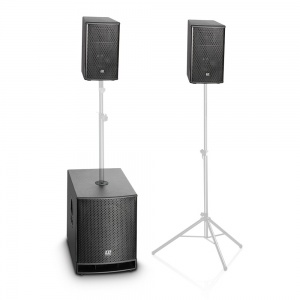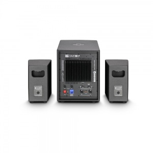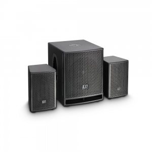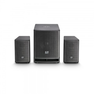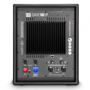 LD Systems DAVE 10 G3 - Active PA-System with DSPThe LD Systems DAVE 10 G3 is the latest generation of an extremely compact active PA system. The bass reflex subwoofer provides a solid bass foundation; the satellites ensure clearly defined mids and clear treble. The 2.1 power amp module built into the subwoofer delivers 1400W Peak power, and the intelligent LD LECC DSP guarantees perfect interaction and controlled functioning. The digital signal processor includes specially optimised crossovers, separate equalisers and limiters for the bass, mid, and treble frequency ranges, and a dynamic compressor that controls the subwoofer according to volume and provides for increased punch at low volumes.The DAVE 10 G3 system's professional features include sturdy MDF cabinets, the necessary protection circuits, RCA, XLR/jack combo and Speakon-compatible connectors, and ergonomic handles. The LD "Evolutive" handles of the subwoofer are a genuine innovation - they permit a trouble-free, secure grip from all sides! The stand support of the satellites is tilted by five degrees for perfect orientation of the speaker cabinet.Protection covers for the system components and a castor board with a lashing strap for convenient transport are available as accessories. Matching speaker stands, spacer tubes, and mounting forks are also available separately.The DAVE 10 G3 is especially suitable for portable use and are very convenient to transport, making it just right for solo entertainers and duos. However, it also cuts a good figure in small permanent installations, e.g., in bars and restaurants.
