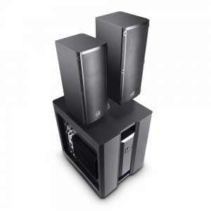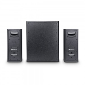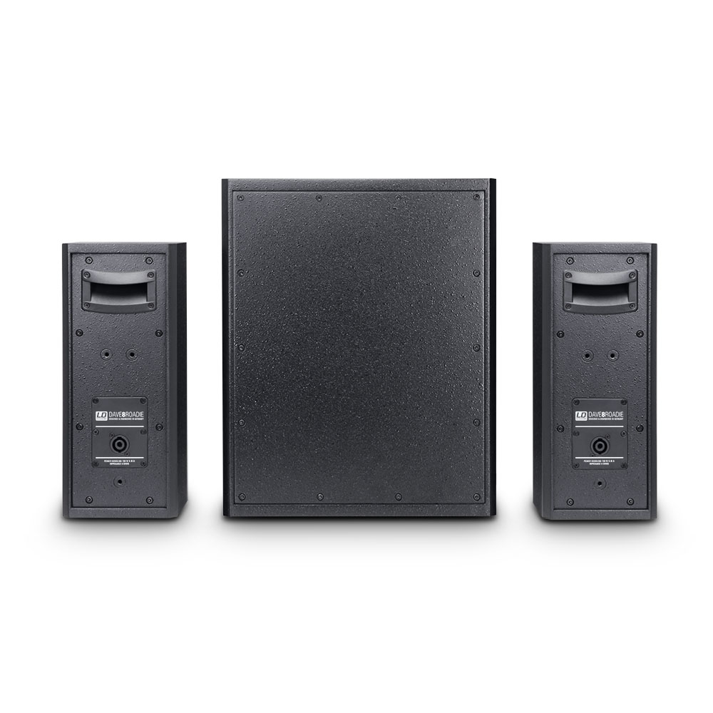 With the DAVE 8 Roadie, LD Systems are successfully implementing their motto "pro audio in motion". This complete PA system with its powerful 1400-watt (Peak) power amp delivers astounding performance for mobile applications. The system is equipped with a high-performance 8" band-pass subwoofer and two satellite speakers (2 x 4" + 1") and was designed as a flexible and portable mini PA system especially for musicians.The DAVE 8 Roadie features three different inputs, which can be used simultaneously. One channel has a combo socket (XLR/jack) for dynamic microphones. One channel offers dual RCA connectors for computers as well as a combo socket (XLR/jack) for mixers or keyboards. Finally, the third channel has a 3.5 mm stereo and a 6.3 mm mono jack input for MP3 players or guitars with a switch for selecting the desired input. The high-performance Class A/B power amp module integrated in the subwoofer powers both the subwoofer and the satellites.The systems features all of the usual protection circuits. The built-in limiter keeps the system safe from overload and ensures a long service life. On the side of the subwoofer, in addition to an ON/OFF switch and a phase reverse switch (180°), there is a separate subwoofer volume knob that allows you to find the perfect mix of brilliant treble, punchy mids, and powerful bass.Sturdy front grilles and ergonomic handles on both the subwoofer and the satellites underscore the roadworthiness of the DAVE 8 Roadie and make the system an ideal companion for musicians.
