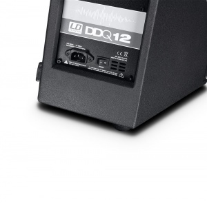 Quality 1 millisecond ahead … the LD Systems DDQ 12 active speaker.The LD Systems DDQ 12 is an extremely high-performance 2-way active speaker for compact systems, FOH and monitor applications, delay lines, and permanent installations. The groundbreaking design and comprehensive features with leading components ensure superior performance in its class.Trouble-free operation of the DDQ 12 is ensured by a specially programmed Sharc DSP with 24-bit/48-kHz converters that have remarkable dynamics of 127dB. It incorporates volume control, delay, EQ, crossover, phase, and all protection functions for the drivers and power amps. Heat sinks and a silent fan provide additional protection against overheating. The decisive advantage is attained by a predictive peak limiter with a look-ahead time of 1 millisecond. It guarantees absolute freedom from distortion even at maximum volume.The DDQ 12 is loaded with a 12” Faital Pro PR300 neodymium woofer and a BMS tweeter. The asymmetrical tweeter horn offers optimal, even sound level distribution from the very first to the very last row of the audience. Its design ensures extraordinarily dynamic, linear reproduction up to 20 kHz. The two drivers are powered separately by two Class D Hypex UCD400 power stage modules with an output of 800W RMS. They have a load-controlled, linear frequency response and extremely low total harmonic distortion with extremely low noise and, thanks to their switching power supply, maximum efficiency. The maximum sound pressure level of the DDQ 12 is 134 dB with a dispersion angle of 80° x 50°; the horizontal sound distribution is characterized by extraordinary symmetry.The input, link, and switchable subwoofer output of the DDQ 12 take the form of XLR sockets. A ground lift switch eliminates ground loop hum, and the system functions are indicated by LEDs.The sturdy bass-reflex enclosure is made of 15mm birch plywood with a polyurethaned coating and a front grille made of steel. There is an integral 50° angle for use as a floor monitor and the tweeter horn can be turned accordingly. It has an adjustable tilt stand mount. The innovative Evolutive handles and the low weight facilitate transport. The DDQ 12 active system is made in Germany.