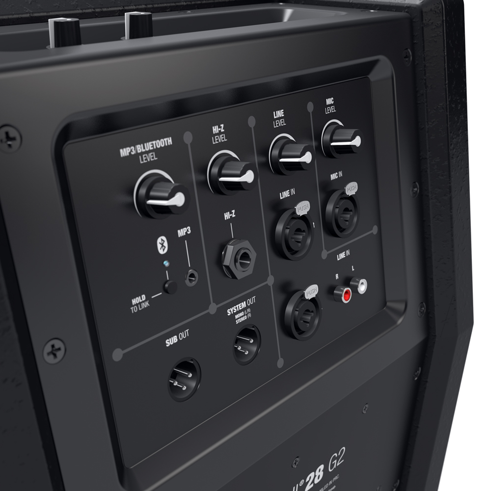 A complete sound system that you can carry together with your ins...trument: introducing the MAUI 28 G2. The two column elements in the padded shoulder bag, the subwoofer in one hand and the guitar or keyboard in the other - and off you go! Setting up the complete system, which doubles as PA and monitor system is just as easy thanks to the special multi-pin cable plugs. The compact and elegant MAUI 28 G2 offers an unbeatable sound quality and wide-ranging sound distribution. It was developed with year-long experience in the design of the column systems as a user-friendly solution for medium sized gigs and fixed installations. The MAUI 28 G2 is equipped with two 8" woofers, sixteen 3" full-range speakers and two 1" neodymium HF drivers. They are driven by a light Class-D power amplifier with an enormous 2,000 watts peak power and produce a grunty bass, balanced mids and precise and silky highs. The DynX® DSP technology from LD Systems provides a top-class performance every time and the highest level of freedom from distortion. It includes a multiband limiter which protects against overloading, an EQ, a compressor and a 3-way crossover with run time correction. The design of the MAUI 28 G2 line array achieves a longer range, increased resistance to feedback and a wider space coverage, which makes separate monitor speakers superfluous. The wave guide of the tweeters has been developed using the Boundary Element Method (BEM), a numerical simulation of the sound radiation and dispersion. It reduces reflections from the floor and ceiling and prevents sidelobe levels and thus achieves an homogeneous dispersion - Your audience hears you in the back row just as clearly as in the front. With the integrated 4-channel mixer, system presets for mono or stereo configuration and Bluetooth® Audio Streaming, you have full control over the system. Whether you are a singer-songwriter, solo entertainer, DJ or musician in a small band, you will be thrilled with the extraordinary sound and portability of the MAUI 28 G2. The column and the subwoofer can be set up separately: thus, the system is extremely flexible and is also an excellent choice for fixed installations. With a selection of clever transport accessories and special mounting hardware, the MAUI 28 G2 is a well thought out overall solution, down to the last details.