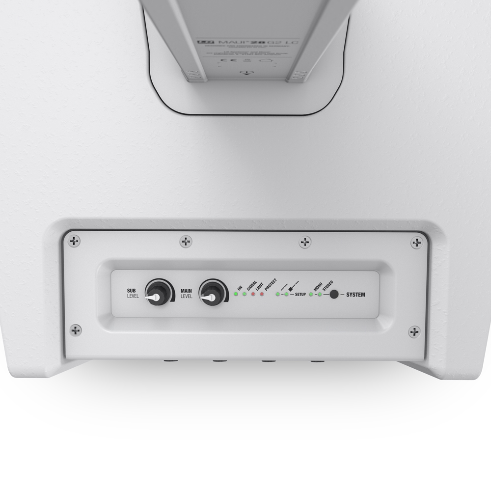 A complete sound system that you can carry together with your ins...trument: introducing the MAUI 28 G2. The two column elements in the padded shoulder bag, the subwoofer in one hand and the guitar or keyboard in the other - and off you go! Setting up the complete system, which doubles as PA and monitor system is just as easy thanks to the special multi-pin cable plugs. The compact and elegant MAUI 28 G2 offers an unbeatable sound quality and wide-ranging sound distribution. It was developed with year-long experience in the design of the column systems as a user-friendly solution for medium sized gigs and fixed installations. The MAUI 28 G2 is equipped with two 8" woofers, sixteen 3" full-range speakers and two 1" neodymium HF drivers. They are driven by a light Class-D power amplifier with an enormous 2,000 watts peak power and produce a grunty bass, balanced mids and precise and silky highs. The DynX® DSP technology from LD Systems provides a top-class performance every time and the highest level of freedom from distortion. It includes a multiband limiter which protects against overloading, an EQ, a compressor and a 3-way crossover with run time correction. The design of the MAUI 28 G2 line array achieves a longer range, increased resistance to feedback and a wider space coverage, which makes separate monitor speakers superfluous. The wave guide of the tweeters has been developed using the Boundary Element Method (BEM), a numerical simulation of the sound radiation and dispersion. It reduces reflections from the floor and ceiling and prevents sidelobe levels and thus achieves an homogeneous dispersion - Your audience hears you in the back row just as clearly as in the front. With the integrated 4-channel mixer, system presets for mono or stereo configuration and Bluetooth® Audio Streaming, you have full control over the system. Whether you are a singer-songwriter, solo entertainer, DJ or musician in a small band, you will be thrilled with the extraordinary sound and portability of the MAUI 28 G2. The column and the subwoofer can be set up separately: thus, the system is extremely flexible and is also an excellent choice for fixed installations. With a selection of clever transport accessories and special mounting hardware, the MAUI 28 G2 is a well thought out overall solution, down to the last details.