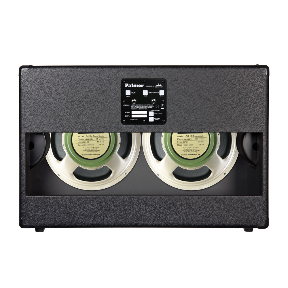 Palmer cabinets are rugged, flexible and affordable guitar cabinets. The main features are:Front-mounted speakersDetachable grillSolid workmanshipSpeaker mount and quality check carried out in GermanyCelestion GreenbackWell-controlled low-end, broad mid-range attack, restrained top-end, forward punchy attitude to chords, searing lead tones without fizz.