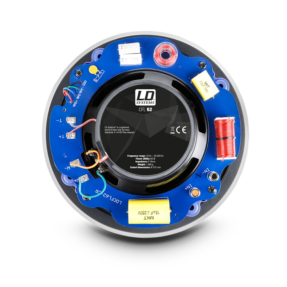 The Contractor CFL 62 is an frameless in-wall speaker for unobtrusive installation in walls. The almost flush front grille with magnetic mount covers a 6.5" woofer and 1.2" tweeter that feature a clear sound and high speech intelligibility. Its frequency response extends to 20 kHz; the sound pressure level is 88 dB at 1 W /1 m, with a power capacity of 60 watt...s of continuous power. Secure swivels enable fast and easy assembly of the CFL 62. The in-wall speaker is designed for a wide scope of applications, providing a discreet sound in hotels, restaurants, bars, lounges, training and conference rooms, shopping centres and even at home.For ELA systems, the CFL 62 is available as a 100 Volt version (CFL 62 100 V) with three taps for 6, 12, and 24 watts.